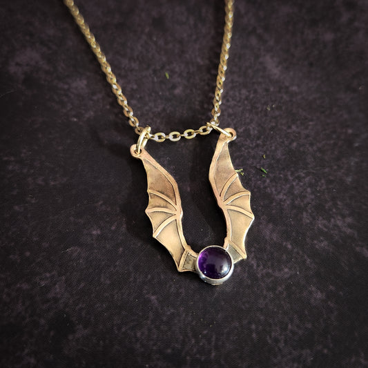 Golden Hatchling Dragon Pendant with Amethyst