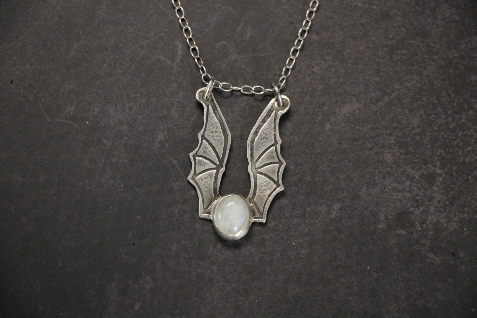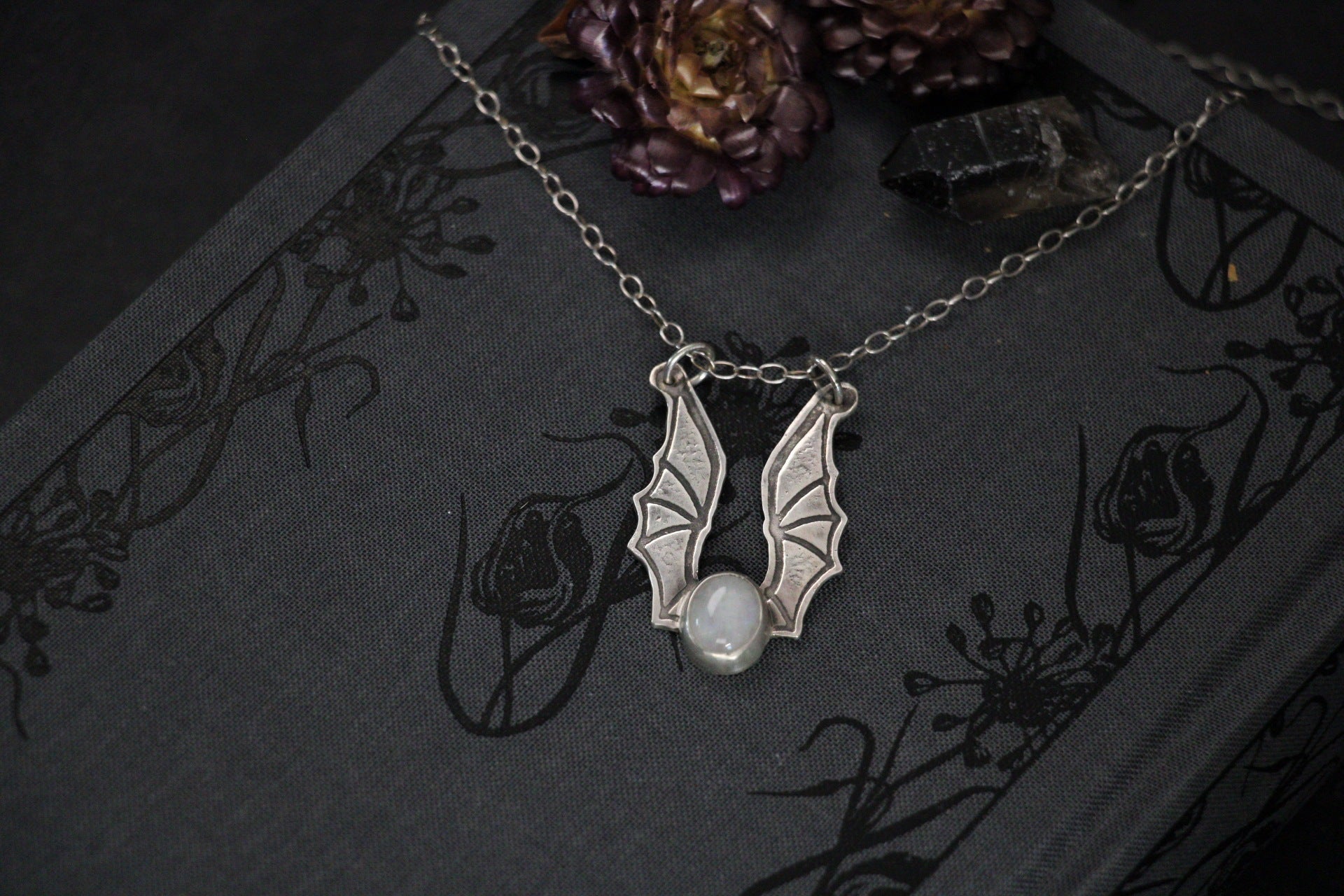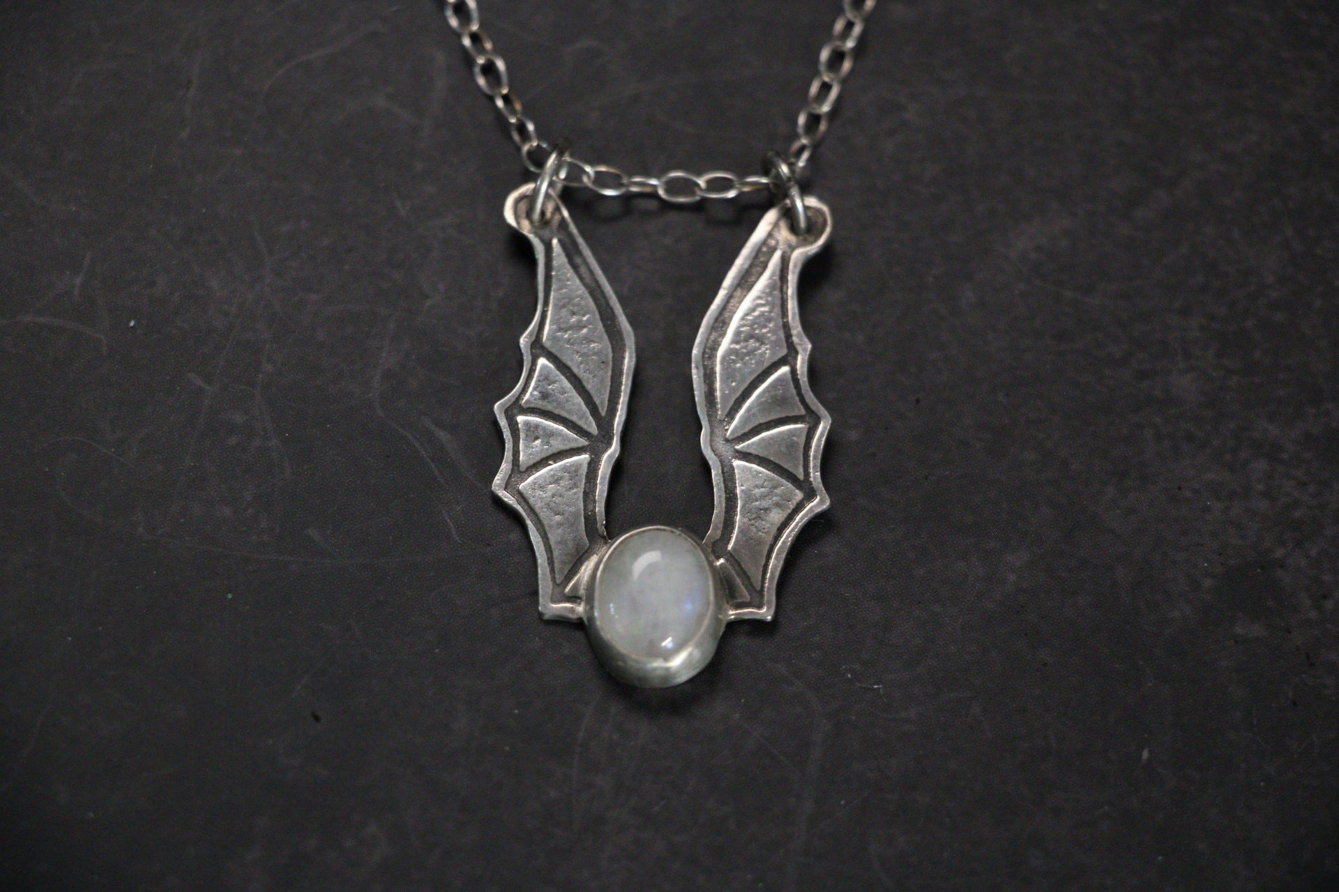 Moonstone has long been associated with intuition, dreamwork, and lunar energy. Paired with the bold silhouette of dragon wings, this piece balances gentleness with strength, making it both functional and deeply symbolic.