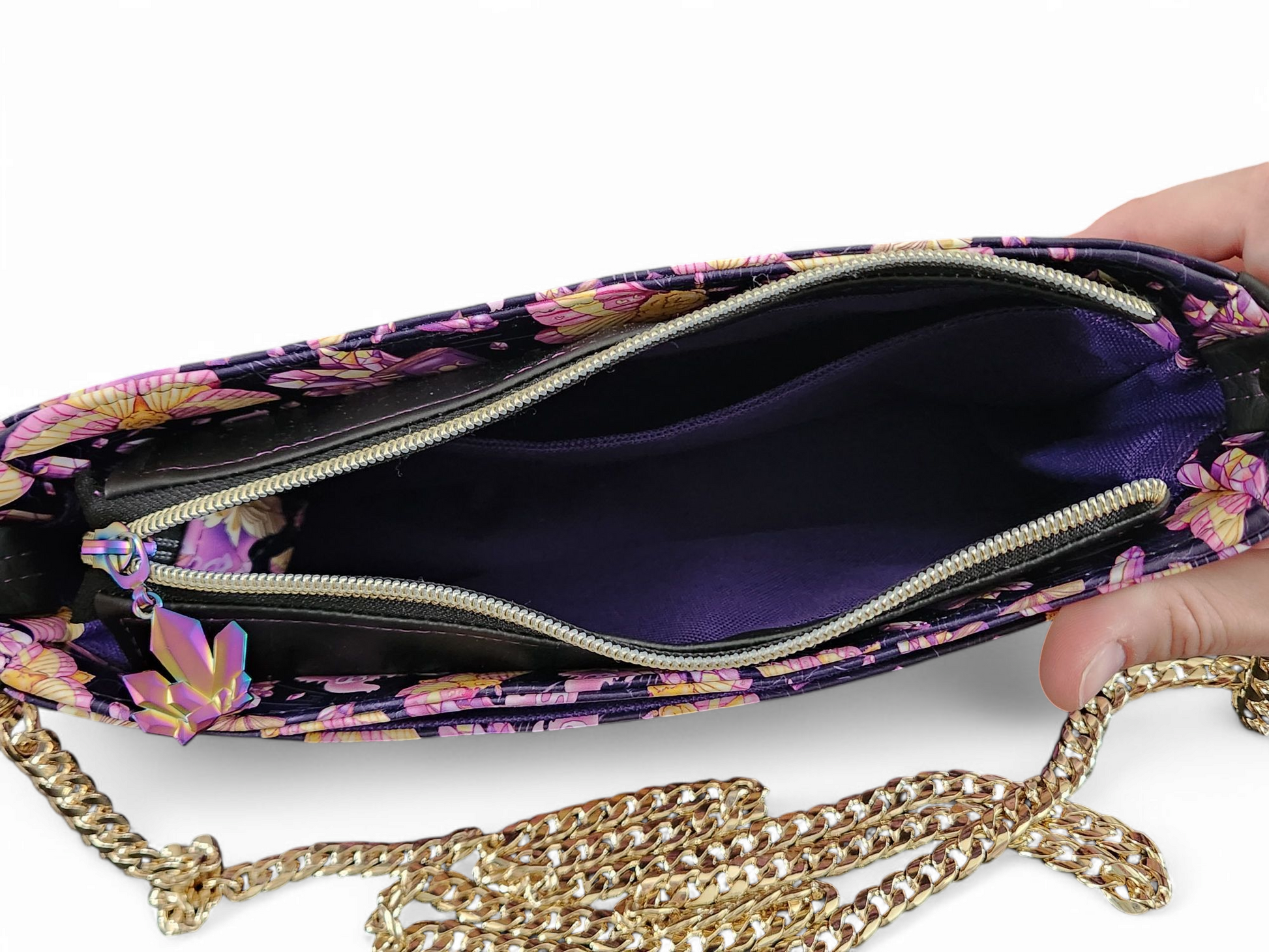 Mystical Moth & Crystals Sling Bag: Witchy Crossbody with Gold Chain