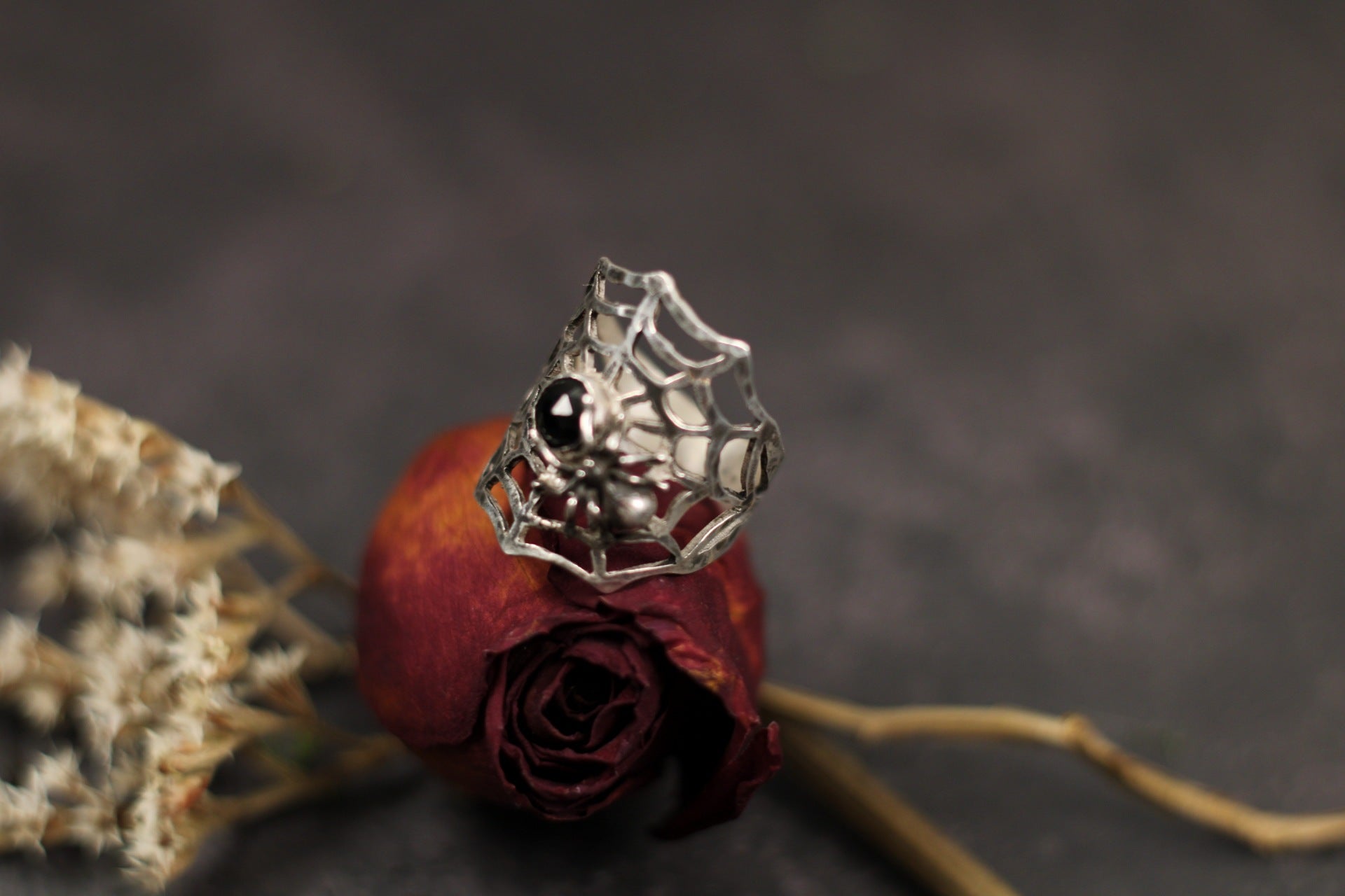 The Widow’s Oath – Sterling Silver Spider & Onyx Statement Ring