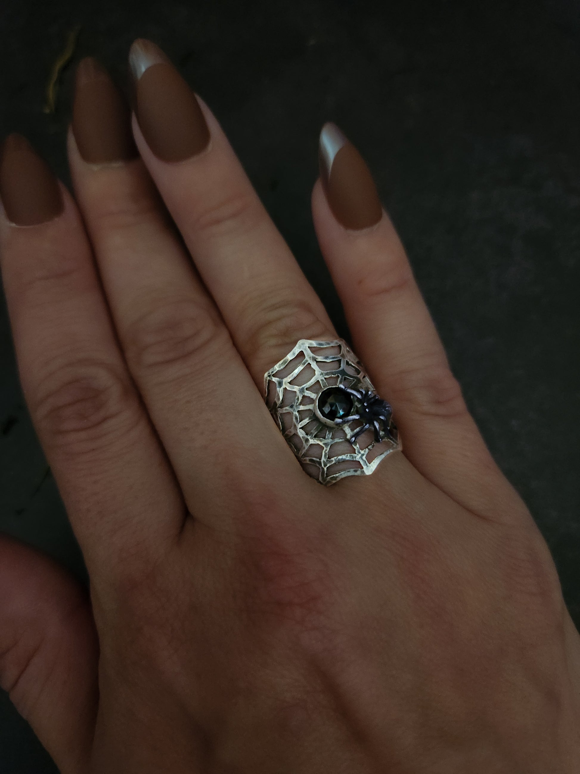 ~ Solid .925 sterling silver with spider and web design